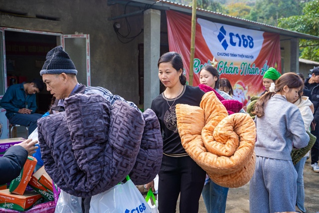 Điểm nhấn giàu cảm xúc của chương trình là hoạt động trao tặng 217 phần quà đến tận tay người dân địa phương. Mỗi phần quà là sự chắt chiu từ tấm lòng của tập thể C168, gồm các nhu yếu phẩm thiết thực như gạo, mì tôm, bánh ngọt, nước mắm, chăn lông, muối ăn, sữa, dầu ăn, bột ngọt, nước tương… Đây là những vật dụng quen thuộc trong đời sống hằng ngày, nhưng với nhiều gia đình, đó là sự hỗ trợ kịp thời, giúp họ vơi bớt phần nào gánh nặng sinh hoạt, nhất là trong thời điểm cuối năm.