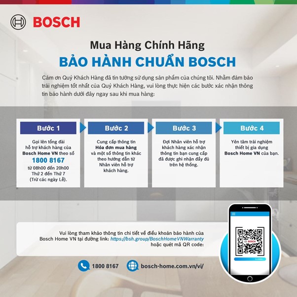 Đại diện kỹ thuật từ ChefZone – đơn vị phân phối và bảo hành thiết bị Bosch chính hãng tại Việt Nam – cho biết: