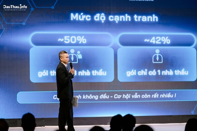 Từ thực tế này, hội thảo đã mang đến những lát cắt chuyên môn sâu sắc thông qua sự chia sẻ của các diễn giả đầu ngành, trực tiếp xoáy sâu vào các "điểm nghẽn" của nhà thầu. Mở đầu bằng sức mạnh của công nghệ, ông Vũ Đình Sơn, chuyên gia từ DauThau.info, đã trình bày chuyên đề “Toàn cảnh đấu thầu Việt Nam 2025 từ góc nhìn dữ liệu”. Những số liệu thống kê thực tế từ hệ thống DauThau.info không chỉ phác họa rõ nét các xu hướng chính của thị trường mà còn giúp doanh nghiệp nhận diện được các phân khúc tiềm năng cũng như những rủi ro cần tránh dựa trên bằng chứng số liệu thay vì cảm tính.