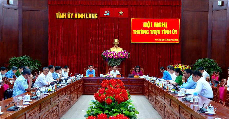 Tại hội nghị, thường trực Tỉnh ủy nghe báo cáo tình hình, tiến độ thực hiện công tác rà soát, tích hợp Quy hoạch tỉnh Vĩnh Long sau sáp nhập tỉnh; báo cáo đề xuất xin chủ trương làm việc với tập đoàn Singapore; xin chủ trương hội thảo quốc tế ngành Dừa; việc thực hiện giải quyết thủ tục hành chính về đất đai trên cổng dịch vụ công trực tuyến. Đồng thời, thường trực Tỉnh ủy cho ý kiến đối với các Tờ trình, Báo cáo của Đảng ủy Ủy ban nhân dân tỉnh về các nội dung như: thành lập Ủy ban bầu cử tỉnh Vĩnh Long; quà tặng cho các đối tượng nhân dịp kỷ niệm ngày Thương binh - Liệt sĩ, Tết Nguyên đán hằng năm và chính sách hỗ trợ người có công với cách mạng trên địa bàn tỉnh; việc hiến tặng tài liệu, hiện vật của tỉnh Vĩnh Long tại Triển lãm thành tựu đất nước “80 năm hành trình Độc lập - Tự do - Hạnh phúc” nhằm phục vụ trưng bày tại Bảo tàng Đảng Cộng sản Việt Nam và một số nội dung khác.