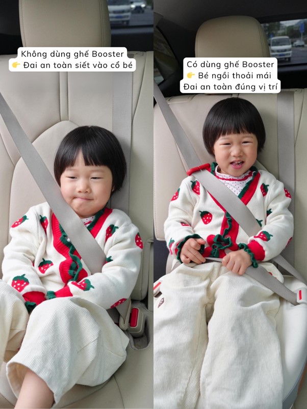 3. Không cho trẻ dùng dây an toàn dành cho người lớn, thay vào đó với bé chưa đủ chiều cao thì sẽ cần sử dụng đệm nâng chiều cao để có thể thắt dây an toàn người lớn