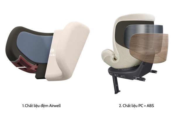 Ghế ô tô trẻ em Maple&Co cũng ứng dụng những vật liệu cao cấp trong ngành an toàn ô tô như khung nhựa PC+ABS chịu lực, vùng bảo vệ lên tới 270 độ, đệm phân tán lực và hệ thống dây đai 5 điểm nhằm tăng khả năng hấp thụ lực, giảm chấn và duy trì ổn định tư thế của trẻ khi di chuyển.