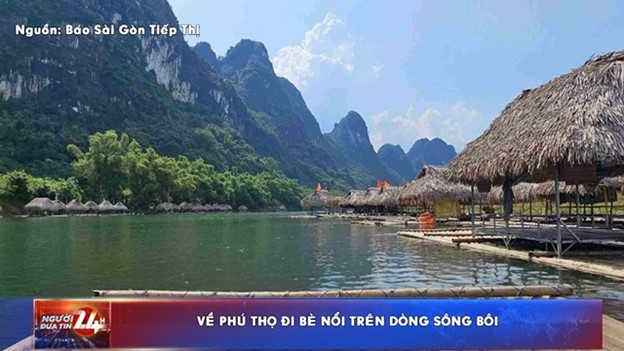 Trên đoạn sông Bôi chảy qua xã Hợp Kim, tỉnh Phú Thọ, du khách có thể ngồi trên những bè nổi bằng tre, chiêm ngưỡng núi non trùng điệp hai bên bờ.